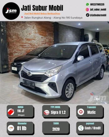 Daihatsu Sigra 1.2L X Automatic 2022 -Warna Silver -KM 81.277 -STNK Bulan November 2026 -Dokumen Dijamin Asli -No Rangka/Mesin Sesuai Keuntungan di Mocil.id Supplier yang bekerja sama dengan mocil adalah dealer pilihan *Garansi Mesin & Transmisi Bebas Biaya Provisi Pembiayaan didukung oleh PT Dipo Star Finance yang telah berpengalaman lebih dari 39 tahun dalam bidang pembiayaan dan diawasi oleh OJK *S&K berlaku