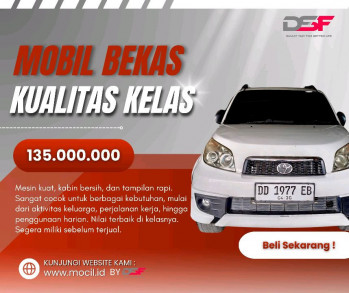 Toyota Rush 1.5L S Manual 2013 -Warna Putih -KM 155.544 -STNK Bulan April 2026 -Dokumen Dijamin Asli -No Rangka/Mesin Sesuai Keuntungan di Mocil.id Supplier yang bekerja sama dengan mocil adalah dealer pilihan *Garansi Mesin & Transmisi Bebas Biaya Provisi Pembiayaan didukung oleh PT Dipo Star Finance yang telah berpengalaman lebih dari 39 tahun dalam bidang pembiayaan dan diawasi oleh OJK *S&K berlaku